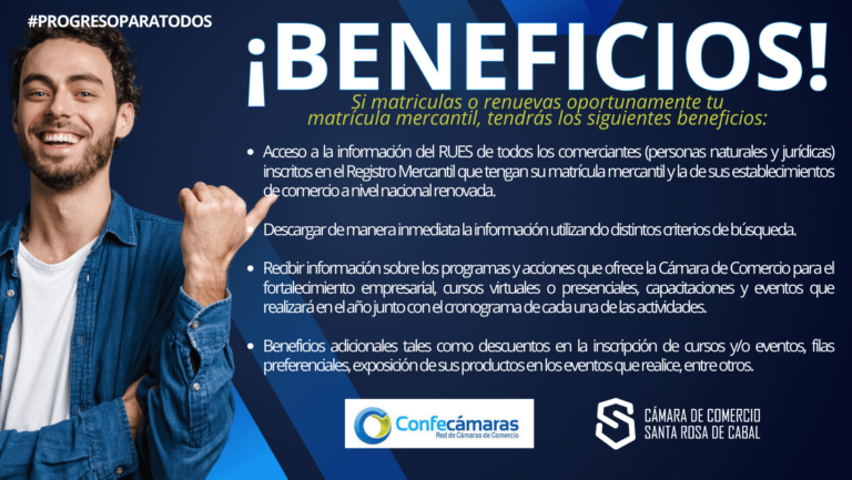 La Cámara de Comercio de Santa Rosa de Cabal identificada con el Nit 891.400.792-4 Para ofrecer las mejores experiencias, utilizamos tecnologías como las cookies para almacenar y/o acceder a la información del dispositivo además contamos con una Cláusula de autorización para el tratamiento de datos personales para mas información dar clic en el enlace de "Política general de tratamiento de datos personales" . El consentimiento y la autorización de estas tecnologías nos permitirá procesar datos como el comportamiento de navegación o las identificaciones únicas en este sitio. No consentir o retirar el consentimiento, puede afectar negativamente a ciertas características y funciones. Para mas Información tenemos habilitado los siguientes canales de comunicación: Email: habeasdata@camarasantarosa.org Teléfonos: (606) 3638746/ 3218164566 Formulario Web: https://www.camarasantarosa.org/contactenos/