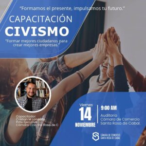 El civismo empieza por ti y tu empresa. Súmate a esta jornada de formación y descubre cómo el compromiso cívico impulsa el desarrollo empresarial y social de nuestra ciudad. Viernes 14 de noviembre 9:00 a.m. Auditorio Cámara de Comercio SRC Cristian M. Londoño Jaramillo — Presidente ejecutivo de la Cámara de Comercio Inscríbete en el […] …