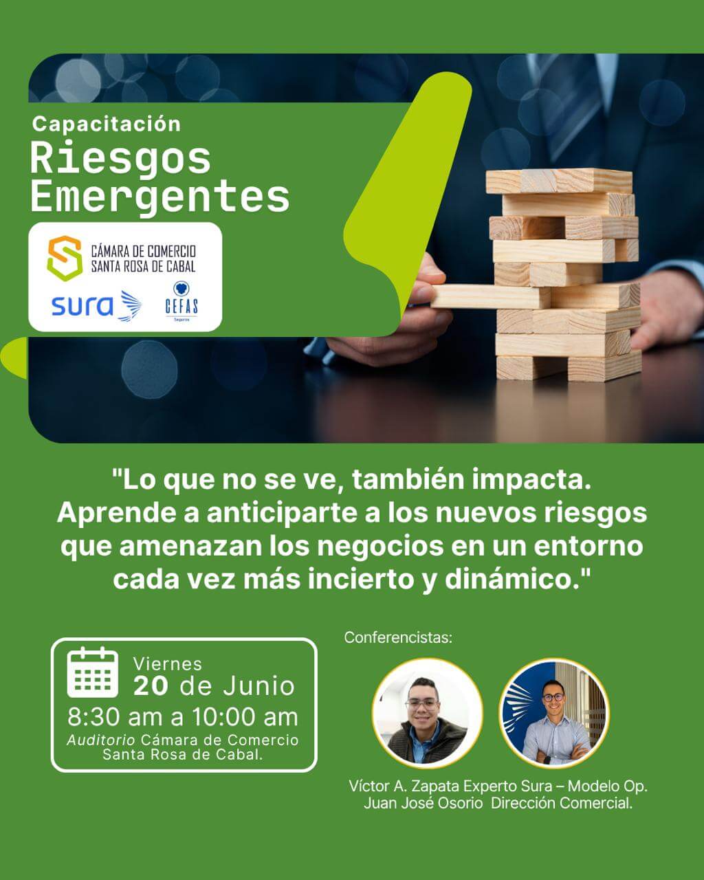 En esta capacitación, expertos de SURA compartirán herramientas clave para identificar y enfrentar los riesgos emergentes en tu negocio: