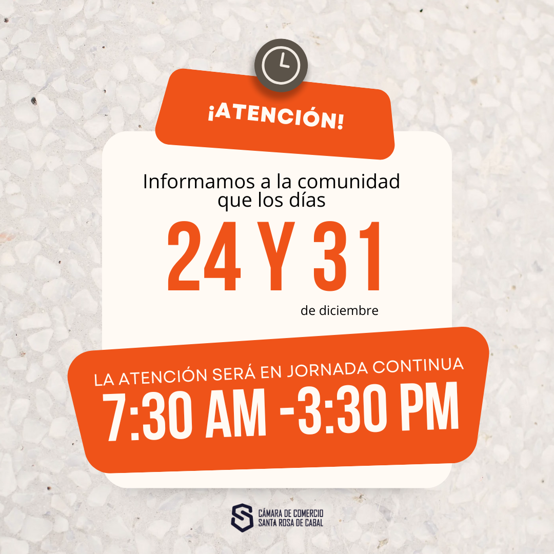La Cámara de Comercio de Santa Rosa de Cabal identificada con el Nit 891.400.792-4 Para ofrecer las mejores experiencias, utilizamos tecnologías como las cookies para almacenar y/o acceder a la información del dispositivo además contamos con una Cláusula de autorización para el tratamiento de datos personales para mas información dar clic en el enlace de "Política general de tratamiento de datos personales" . El consentimiento y la autorización de estas tecnologías nos permitirá procesar datos como el comportamiento de navegación o las identificaciones únicas en este sitio. No consentir o retirar el consentimiento, puede afectar negativamente a ciertas características y funciones. Para mas Información tenemos habilitado los siguientes canales de comunicación: Email: habeasdata@camarasantarosa.org Teléfonos: (606) 3638746/ 3218164566 Formulario Web: https://www.camarasantarosa.org/contactenos/