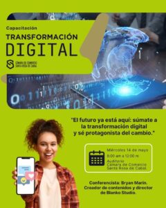 La Cámara de Comercio de Santa Rosa de Cabal te invita a una capacitación imperdible sobre Transformación Digital, pensada para empresarios, comerciantes y emprendedores que buscan adaptarse a los nuevos retos del mercado.