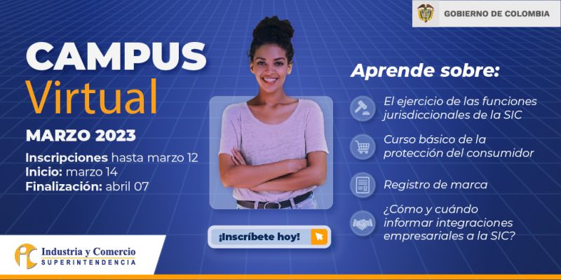 la oferta académica virtual de la Superintendencia de Industria y Comercio para el mes de marzo: